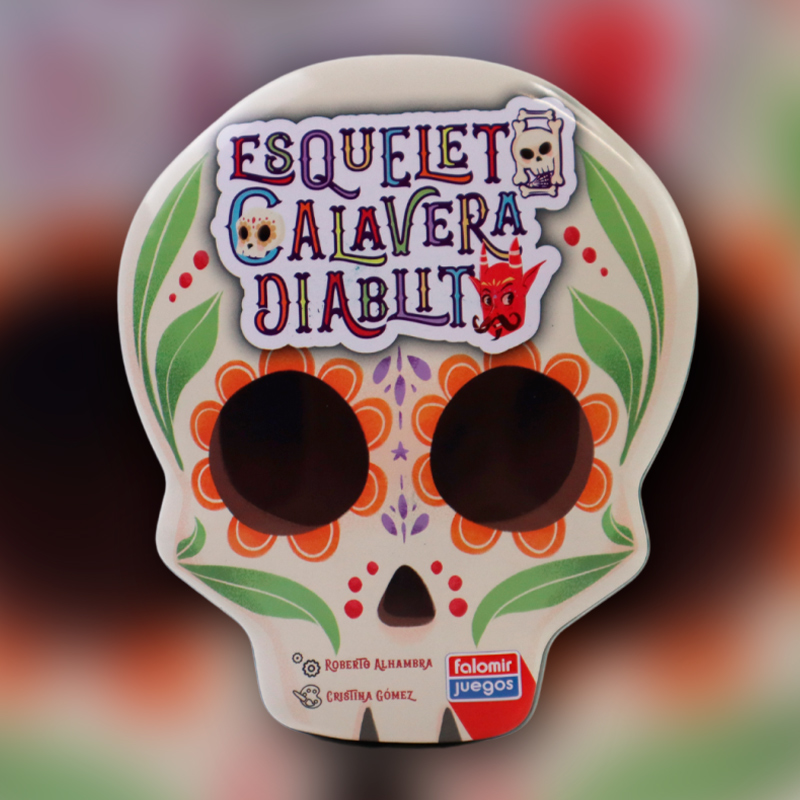 Esqueleto Calavera Diablito es un juego de cartas de tan solo un minuto de duración. Durante el Día de Muertos, las ánimas que han fallecido pueden volver a reunirse con sus seres queridos. Tienes que ser rápido porque solo la más veloz podrá cruzar el portal que separa los dos mundos. ¡Gana quien se quede sin cartas! Reúne las cartas de un mismo color y barájalas. Luego, descarta tus cartas con este orden: Esqueleto, Calavera y Diablito.