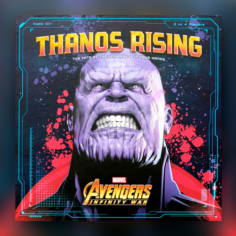 «Thanos Rising: Avengers Infinity War» es un juego de mesa en donde los jugadores reclutan héroes y reúnen un equipo para enfrentarse a Thanos y sus fuerzas malvadas en un esfuerzo por impedir que logre su plan maestro: recoger las seis piedras infinitas para alimentar el guantelete infinito y causar estragos en el tejido mismo de realidad.