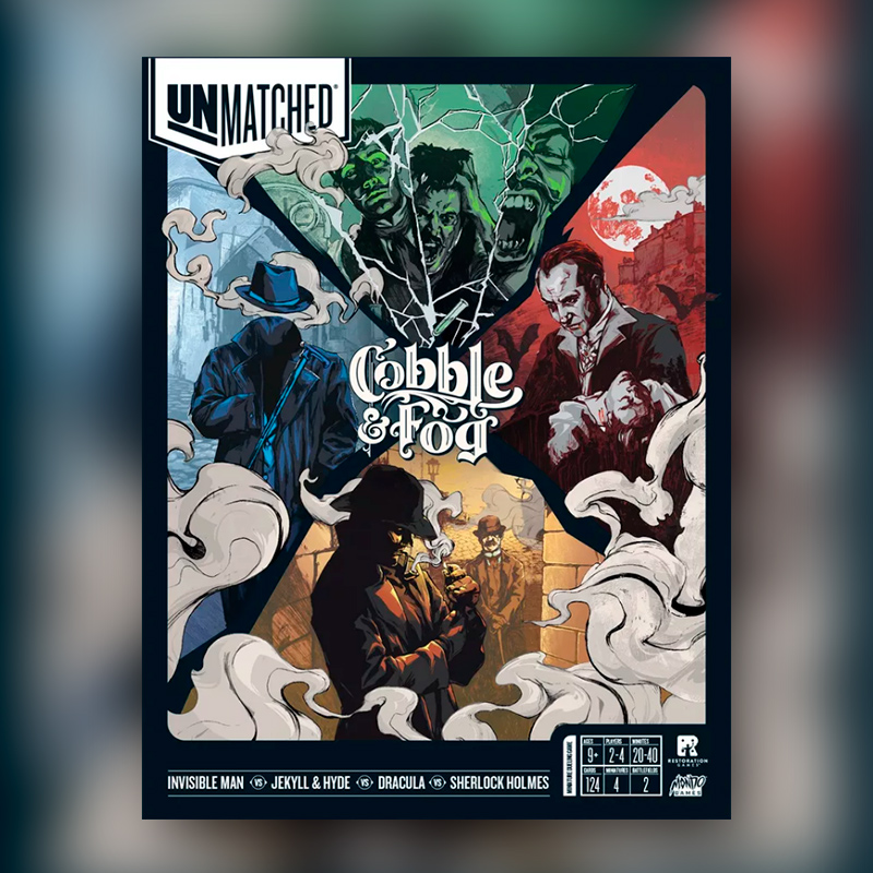 «Unmatched: Cobble & Fog» es una expansión del juego de cartas «Unmatched», autojugable, y que incluye nuevos personajes con sus correspondientes cartas, miniaturas de héroe y fichas de ayudante. Además, también se añade un mapa en el que reflejar tus batallas.